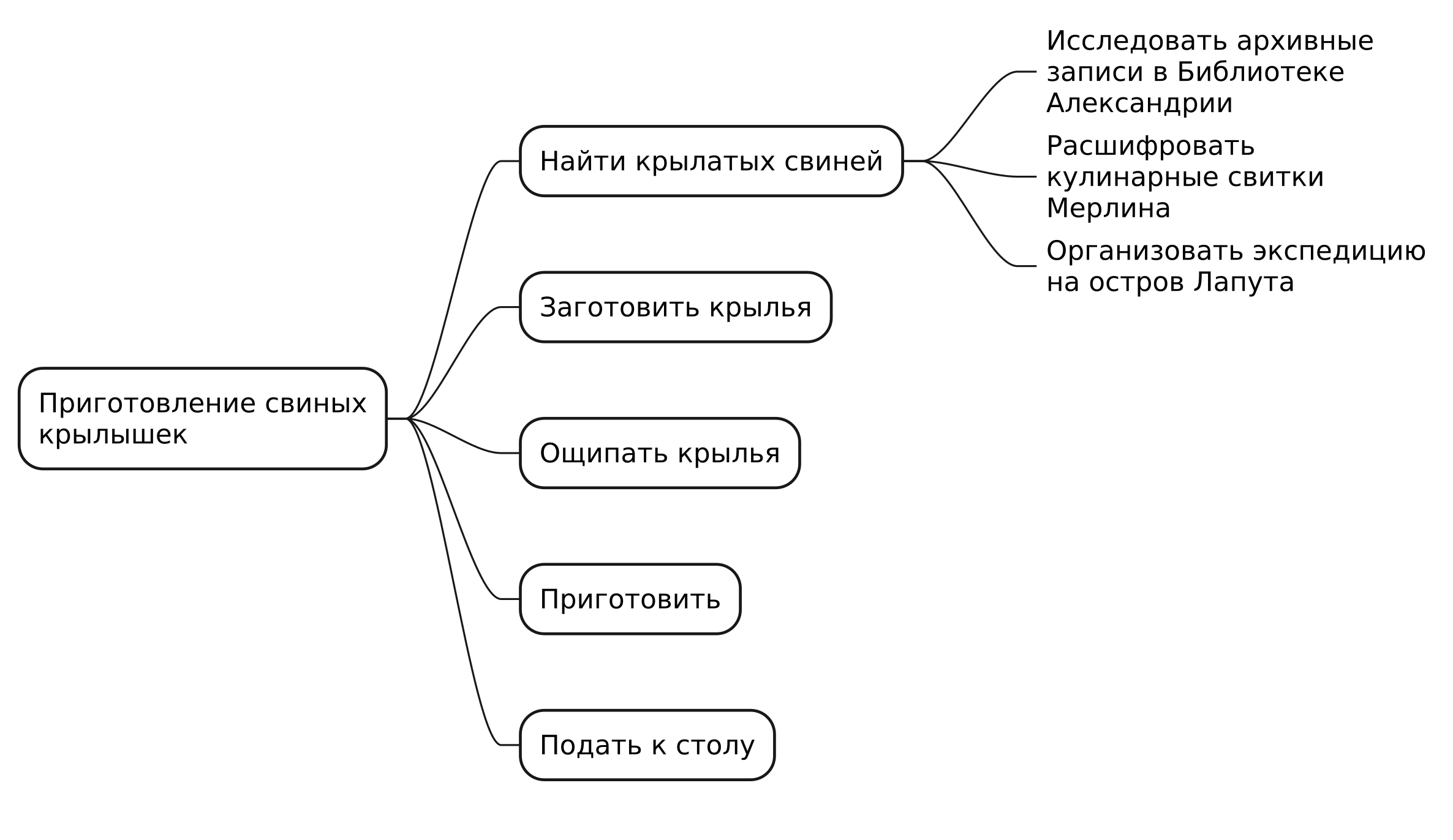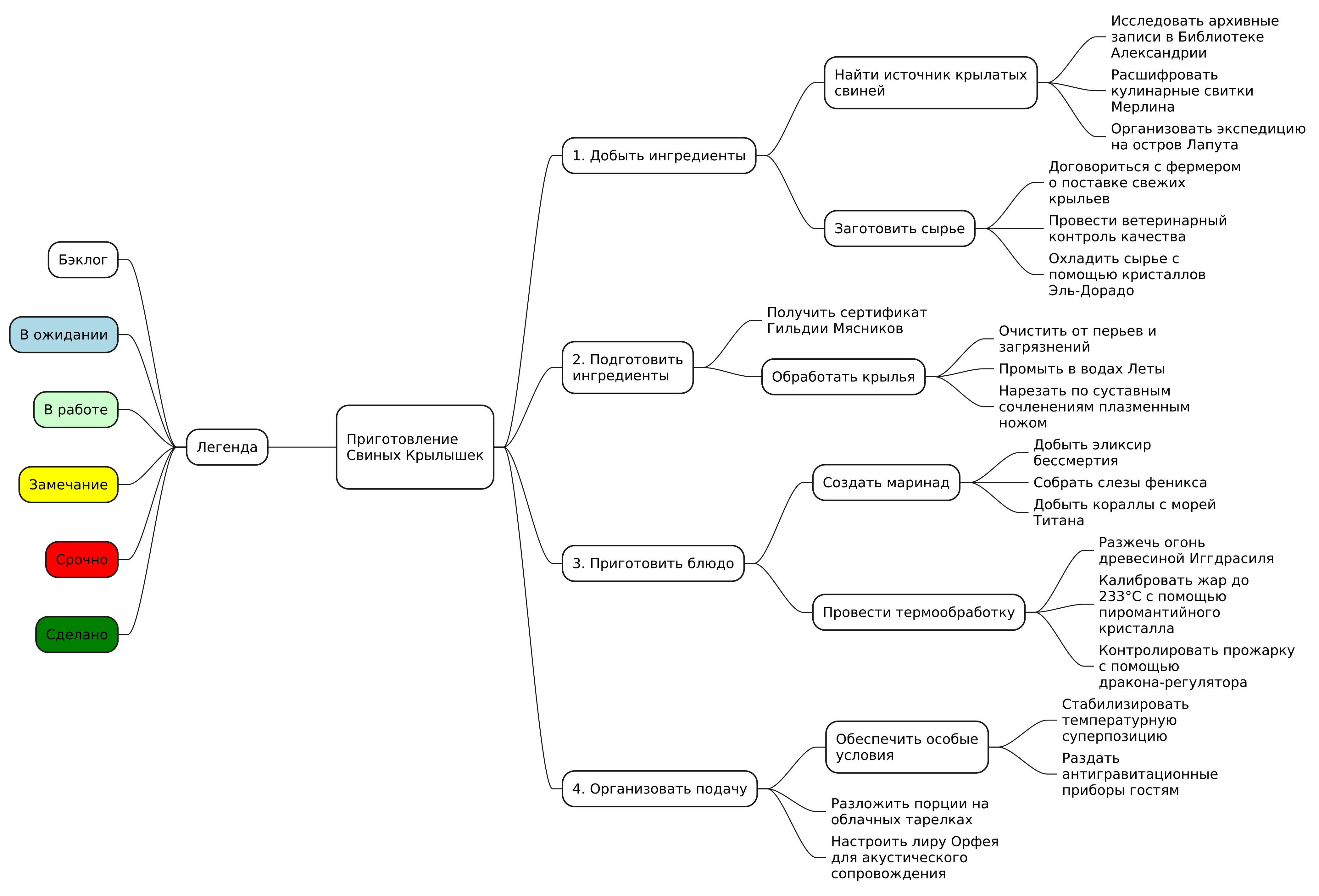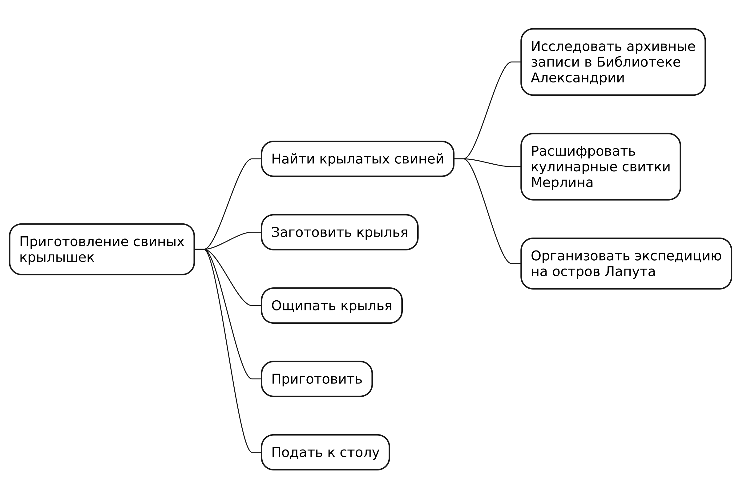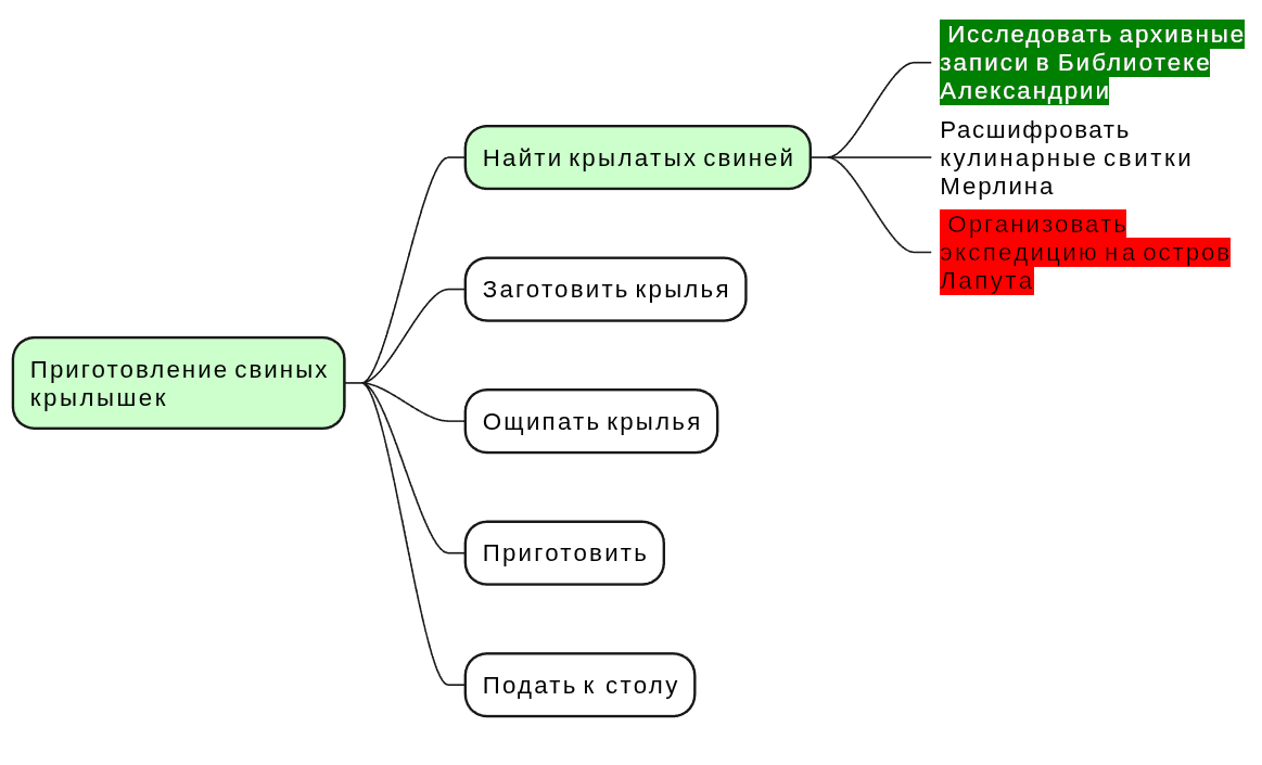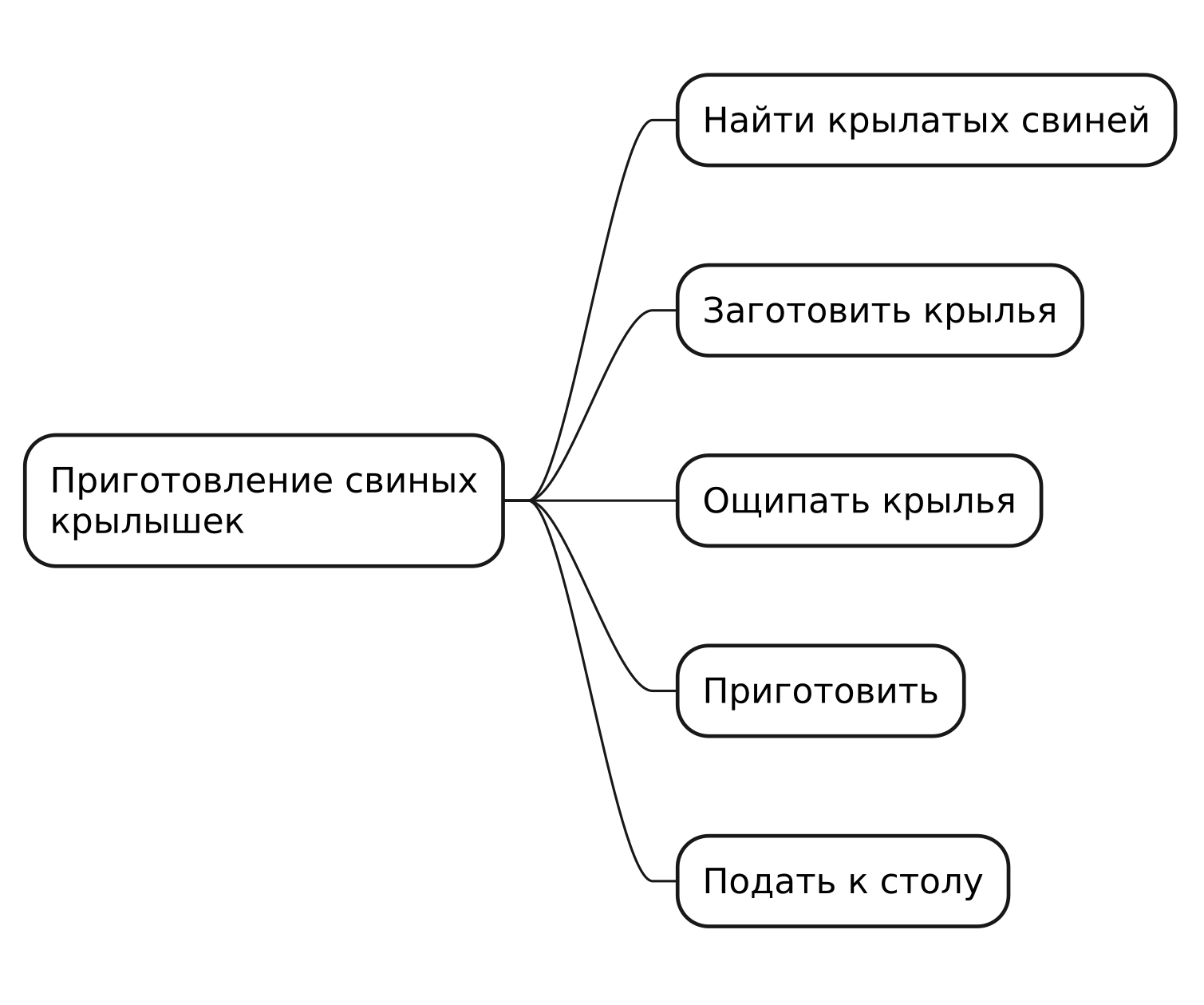 Другой вариант, более правильный, это разбить задачу на части и оформить в виде плана. Например, хотим приготовить свиные крылышки, для этого нужно: