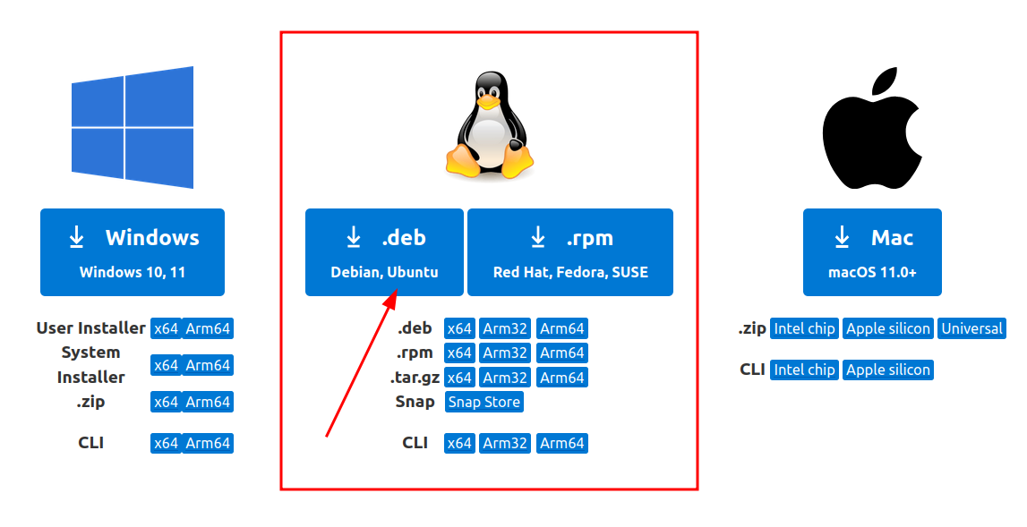 Выбираем блок с пингвином, нажимаем большую кнопку «deb» и ждем