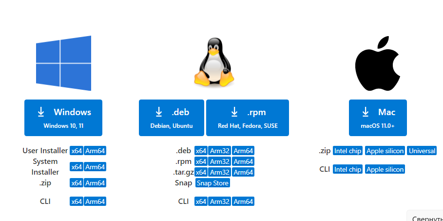 Нажмите большую кнопку Windows (не то чтобы были варианты, но вдруг), дождитесь загрузки. Дальше запустите установщик и стандартным «Окей»-«Далее»-«Далее» установите программу. Дальше в Пуске найдите VS Code и запустите. Откроется интерфейс программы, после этого можно начинать настройку (см. следующий раздел статьи).