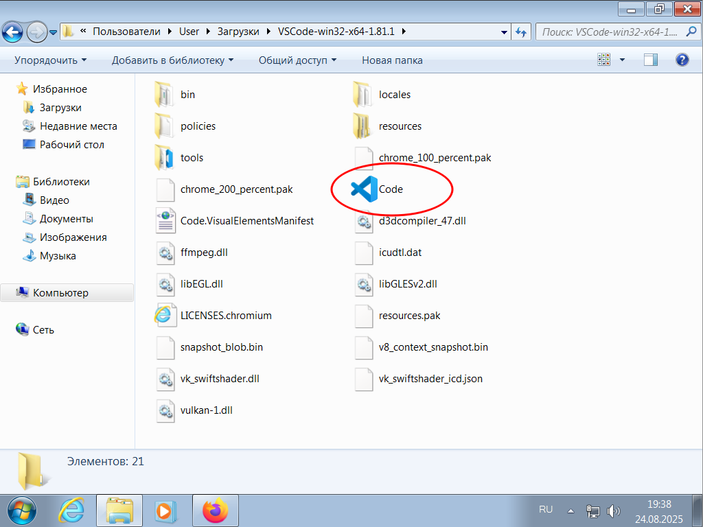 Теперь достаточно куда-нибудь распаковать архив. Для удобства имеет смысл отправить значок VS Code на рабочий стол в виде ярлыка.