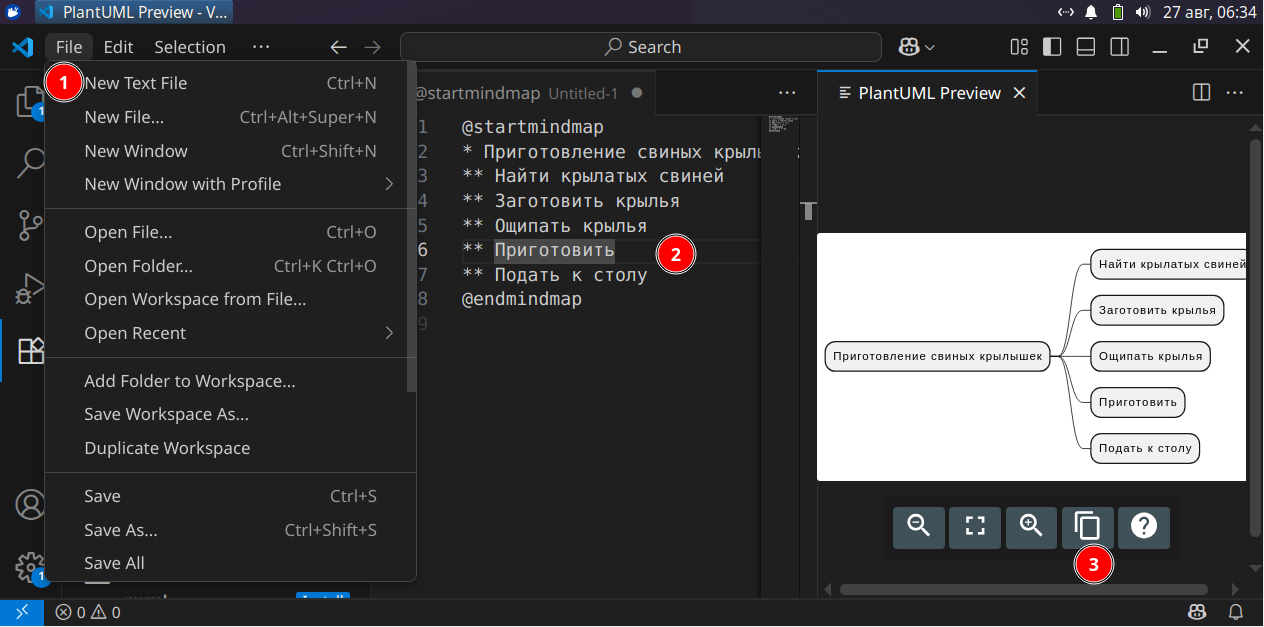 Предварительно нужно положить в папку с диаграммой файл mindmap_inc.puml (см. архив ниже).